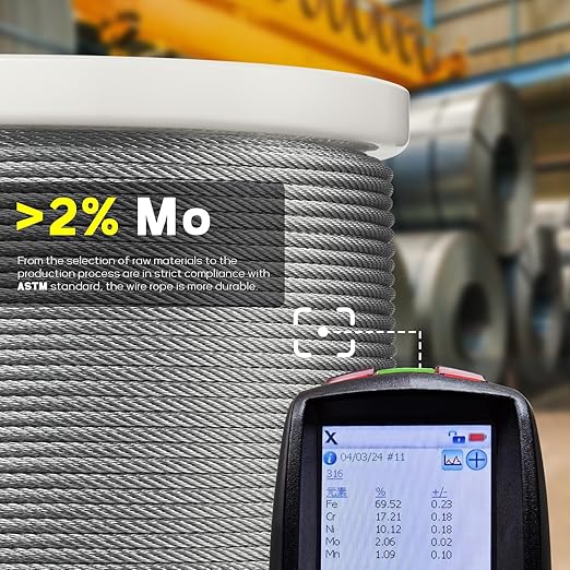- High-quality 316 Stainless Steel: Manufactured from ASTM standard marine-grade 316 stainless steel with 2% molybdenum, our steel cable has excellent corrosion resistance and rust resistance, ensuring first class durability even in high-salt coastal areas and chlorine-rich environments like swimming pools