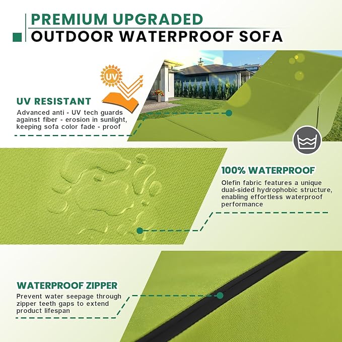 jela Outdoor Chaise Lounge, Waterproof Folding Sofa Bed Lounge Chair, UV Resistant Folding Lounge Chair with Machine Washable Cover, Soft Foam Patio Sofa Chairs Pool Lounge Chaise Chairs (Green)